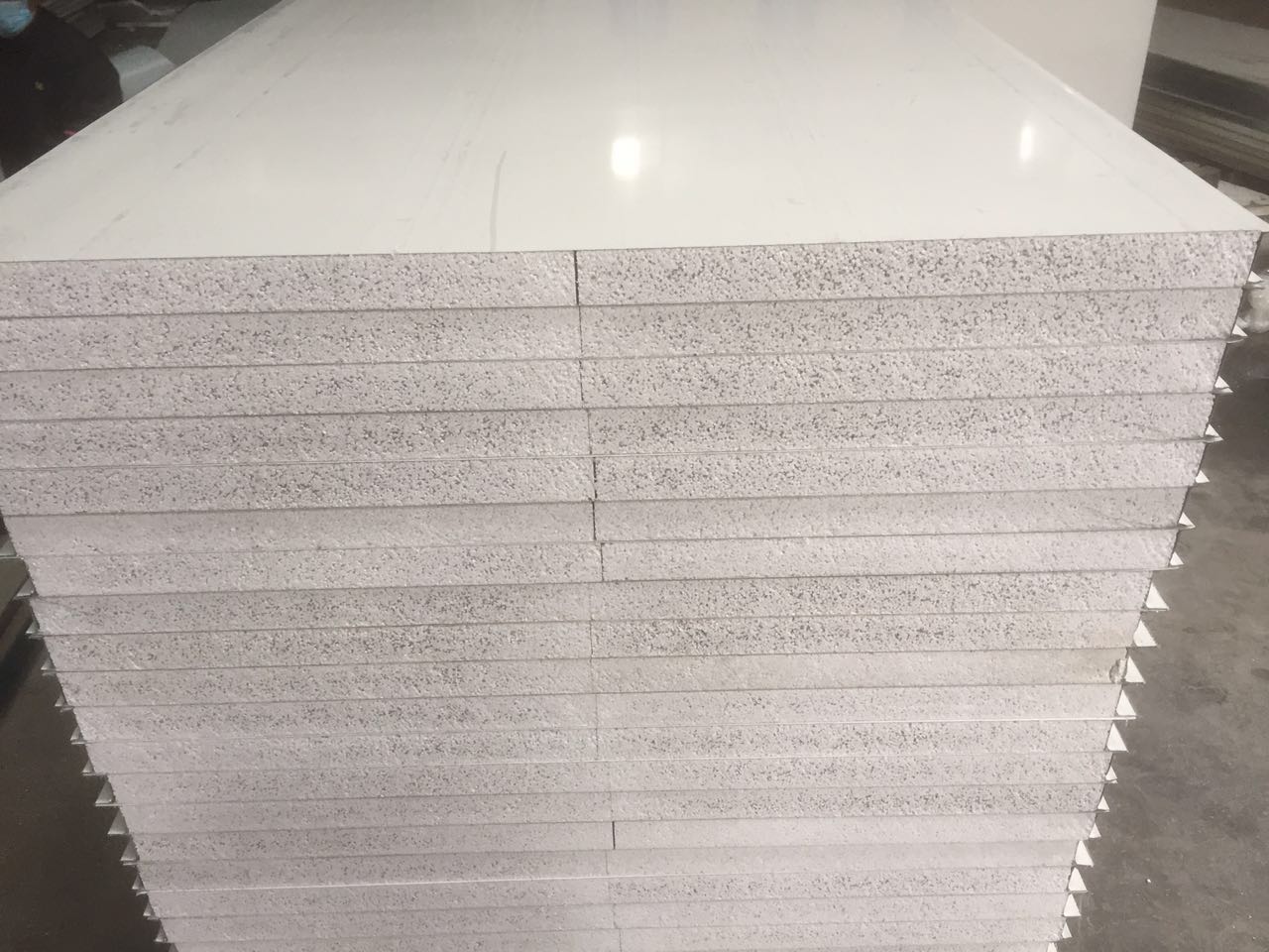 手工復(fù)合板,兩面采用彩涂鋼板,芯材采用無(wú)機(jī)質(zhì)玻鎂板、巖棉,四周采用鐵質(zhì)龍骨框或鋁合金冷拉型雌雄口框, 產(chǎn)品具有表面美觀(guān)、隔音、絕熱、保溫、抗震,防火性能符合國(guó)家準(zhǔn)。