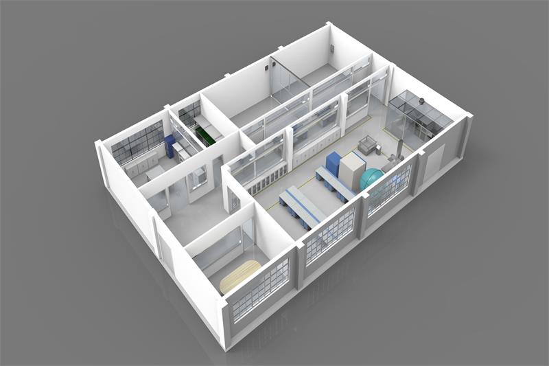 無菌室一般為4 - 5 平方米、高 2.5 米的獨(dú)立小房間(與外間隔離),專辟于微生物實驗室內(nèi)。
